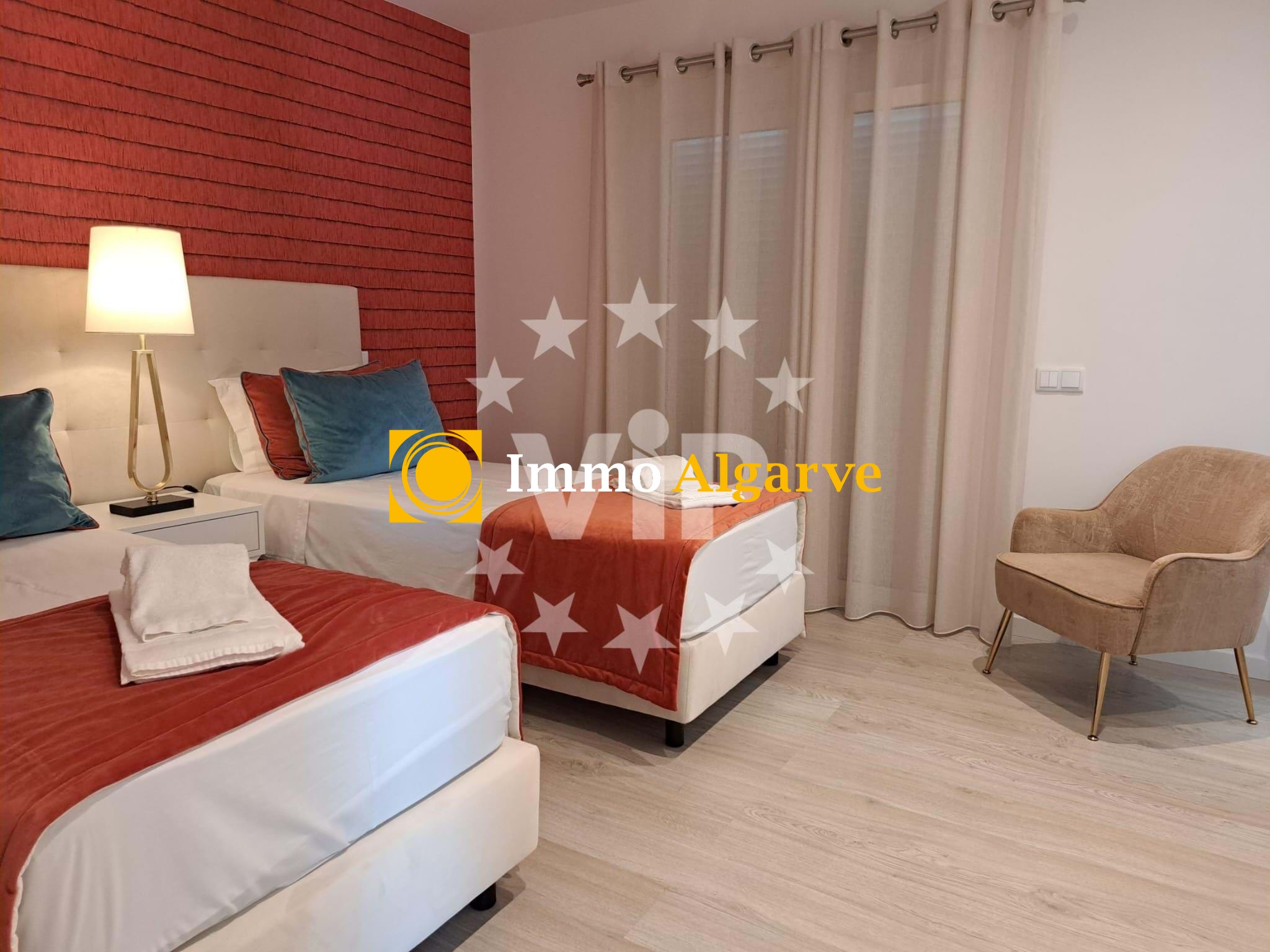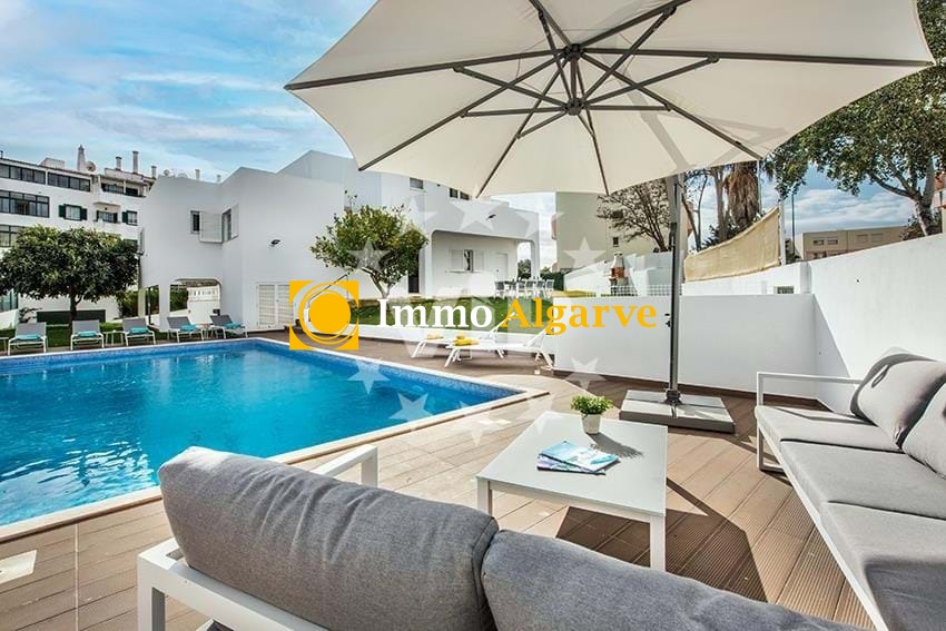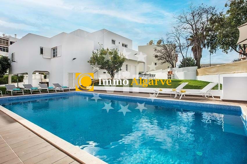 Luxe villa, zorgvuldig ingericht en tot in detail uitgedacht om een onvergelijkbare levenskwaliteit te bieden! Gelegen in een rustige woonwijk, op slechts een paar minuten van het levendige centrum van Albufeira, valt dit huis op door de kwaliteit van de constructie, het prachtige decor en de afwerking. Op de begane grond biedt het sociale gedeelte van het huis een gezellige woonkamer, een elegante eetkamer, een gastenbadkamer en drie ruime, lichte slaapkamers. De volledig uitgeruste keuken, compleet met een grote eethoek, sluit naadloos aan op de buitenkant, waar je een eethoek in de buitenlucht vindt met een barbecue, met uitzicht op het prachtige verwarmde zwembad in een onderhoudsvriendelijke tuin met gazon. Dit uitstekende pand heeft vijf royale suites, elk met een eigen badkamer, ingebouwde kasten en veel natuurlijk licht. Daarnaast zijn er nog twee extra slaapkamers en een handige ondersteunende badkamer. Omringd door muren en toegankelijk via poorten aan zowel de voor- als achterkant van de villa, biedt het een buitenruimte waar momenteel een overdekte speelruimte is, maar die gemakkelijk kan worden gebruikt als parkeerplaats. Het huis is volledig voorzien van airconditioning en biedt zorgvuldig ontworpen ruimtes voor maximaal comfort, met ruime, natuurlijk verlichte omgevingen. Ongetwijfeld een luxe huis op een centrale locatie, gebouwd en ingericht met uitzonderlijke smaak, met de belofte van een superieure kwaliteit van leven in het hart van de Algarve.
