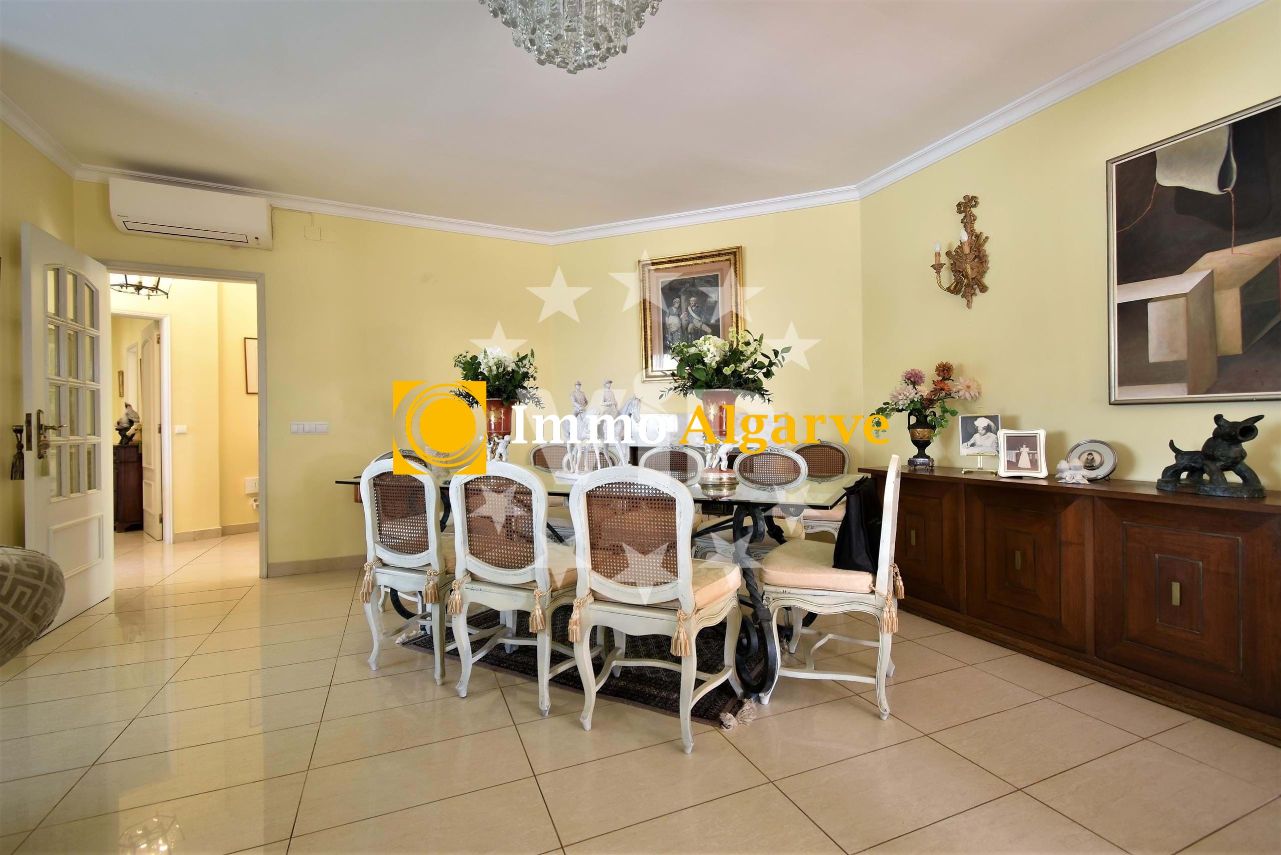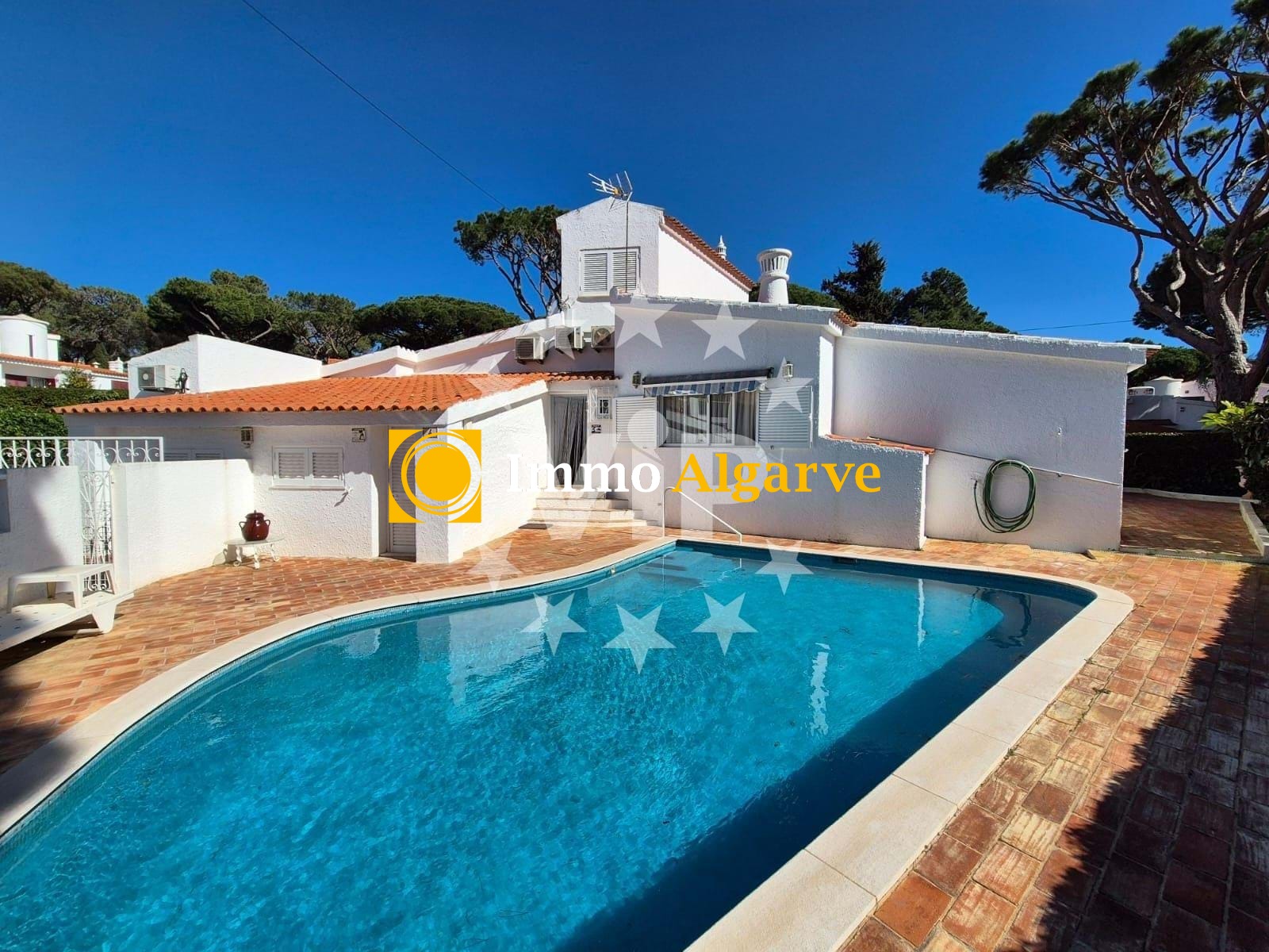 Gelegen in het hart van Vilamoura, een zeldzame kans om een charmant huis met twee slaapkamers en een huis met een perceel van 500 vierkante meter, zwembad, tuin en intramurale parkeerplaats te verwerven. Met een uitnodigende sfeer beschikt deze villa op de begane grond over een hal, een gastenbadkamer, drie ruime slaapkamers, elk met voldoende ruimte en een eigen badkamer, een berging, keuken met toegang tot de achterkant van de villa en de tuin, evenals een woonkamer met directe toegang tot de tuin en het zwembad, perfect om te ontspannen en te genieten van je dag, en een aparte bibliotheek waar je kunt ontspannen. Boven in de villa is een speciale schilderruimte gecreëerd, met een grote en lichte ruimte die gemakkelijk kan worden aangepast aan jouw behoeften. Voor buitenmomenten beschikt het ruime exterieur over een barbecueplaats en een ruimte met een gootsteen, ideaal voor entertainment en om het hele jaar door buiten te eten, met gemakkelijke toegang tot het zwembad en de tuin. Ondanks het feit dat het huis geen garage heeft, biedt het het gemak van een parkeerplaats binnen de muren, waardoor de veiligheid en privacy van je voertuig gewaarborgd is. Mis de kans niet om dit unieke huis te ontdekken, waar comfort en gemak samenkomen in een van de meest prestigieuze wijken van Vilamoura. Neem vandaag nog contact met ons op voor meer informatie en om een bezichtiging te plannen om alle charmes te ontdekken die dit huis te bieden heeft.